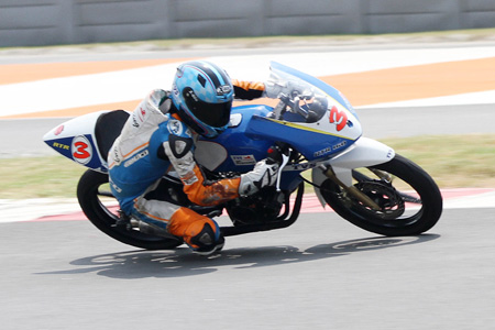 September 14, 2013: Round 3 of the 2013 FMSCI–MMSC Indian National Motorcycle Racing Championship kicked off at the Buddh International Circuit today with 4 races taking place. The highlight of the day was the wheel–to–wheel battle between India´s top two riders Sarath Kumar & K Rajini Krishnan in the Honda CBR 250 category. Rajini got past Sarath on the final corner in the final lap to take the win by 0.0157 seconds.