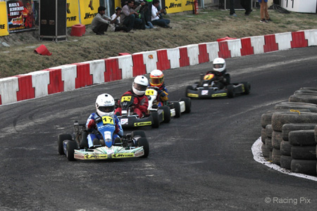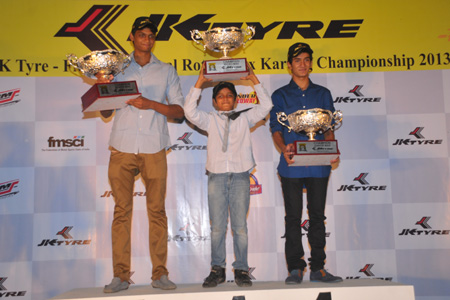 Prasad, who had an indifferent outing in the final round, still managed to claim the championship with a total of 424 points ahead of Bafna, who closed the year with 412 points. Nayan Chatterjee, who was disqualified after qualifying due to technical infringement, had to start from the back of the pack in pre–finals, but still managed to finish in sixth place and in the finals he finished in fourth, which meant he collected 81 points that ensured he finished in third place in this year’s 10th JK Tyre–FMSCI National Rotax Max Karting Championship.