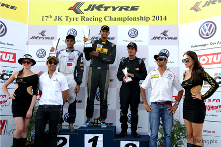 Coimbatore, June 1:Chennai’s Vishnu Prasad stamped his class on the first round of the JK Tyre Racing Championship 2014 by winning a hat-trick of titles in the JK Racing India Series, the feature event of the competition, which concluded at the Kari Motor Speedway, in Coimbatore on Sunday.