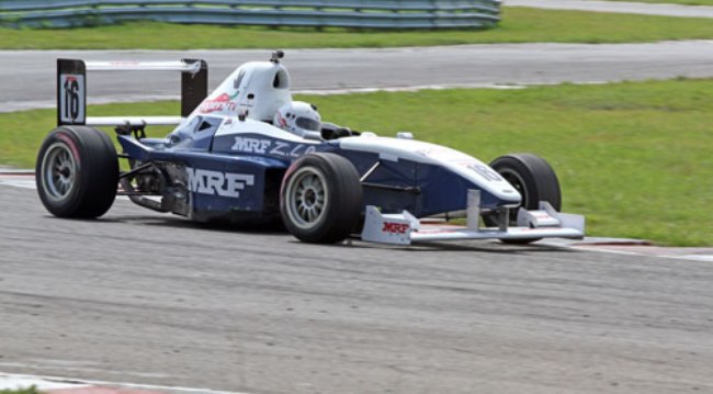 Meanwhile, Karthik Tharani Singh pulled off a near-perfect lap at the fag end of the qualifying session to pip Arjun Narendran to the pole position in the MRF F1600 category.