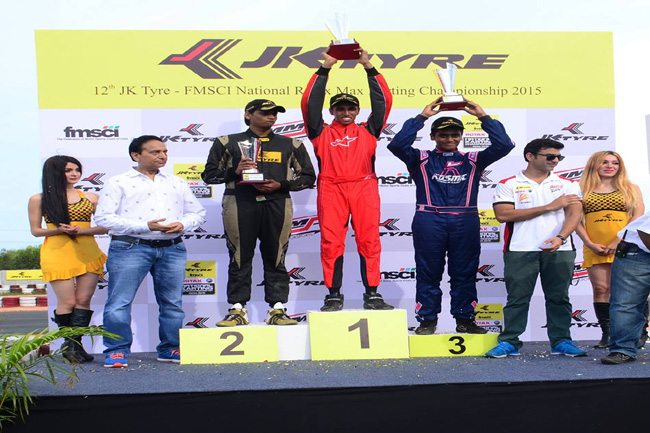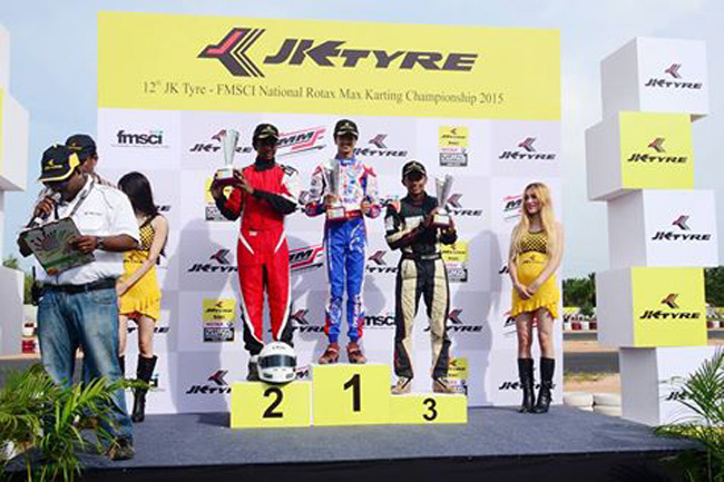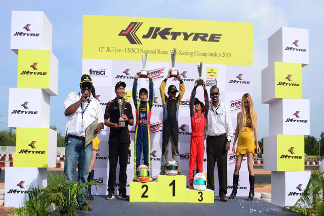 The champions in the Junior and Senior Max categories will now participate in the World Karting finals in Portugal this year. The top three overall champions in the Junior and Senior Max categories will drive in the JKFB02 class in the JK Tyre Racing Championship 2016.